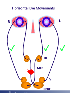 A 26 year old female, with previous history of myelitis, presents with double vision on looking to the left.