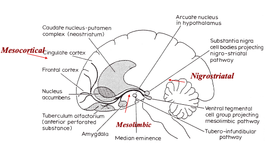 Describe the effect of SCH on mesocortical and mesolimbic patients