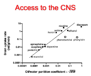 more lipid= easier access in CNS