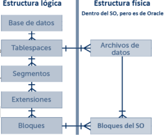 Tabla, Índice, Undo, LOB, etc. Todos ellos son tipos de segmentos, son objetos con información para ser guardada. Cuando creas un objeto decides a qué tablespace pertenece. Es una unidad lógica de almacenamiento que contiene los datos reales de un objeto de base de datos (tabla, índice, vista materializada, etc.). Cada segmento se almacena dentro de un tablespace.