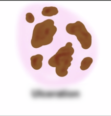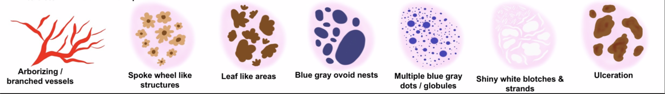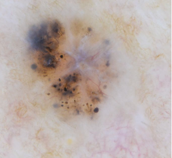 What is a large, discrete, and well-circumscribed, pigmented areas, larger than globules. When a network is absent, “these” are highly suggestive of basal cell carcinoma.