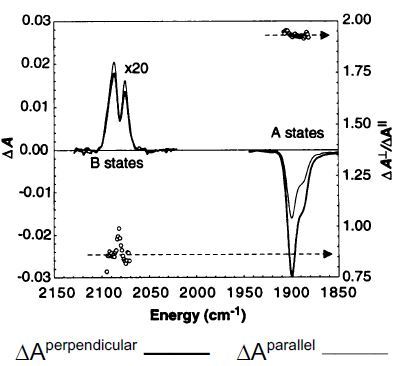 contact with the heme. The CO is highly constrained rotationally and lies parallel to the heme