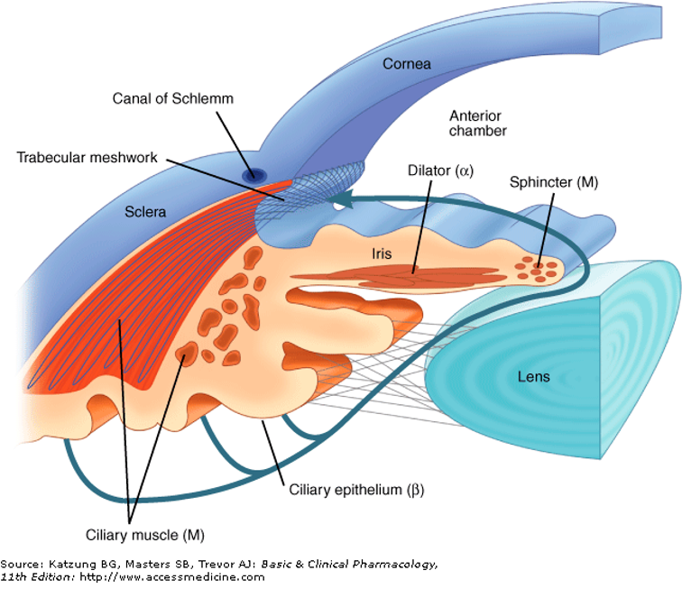 PATH: •Drains through angle structures (trabecular meshwork, canal of Schlemm)