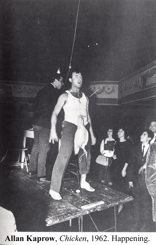 an unconventional dramatic or artistically orchestrated performance, often a series of discontinuous events involving audience participation.