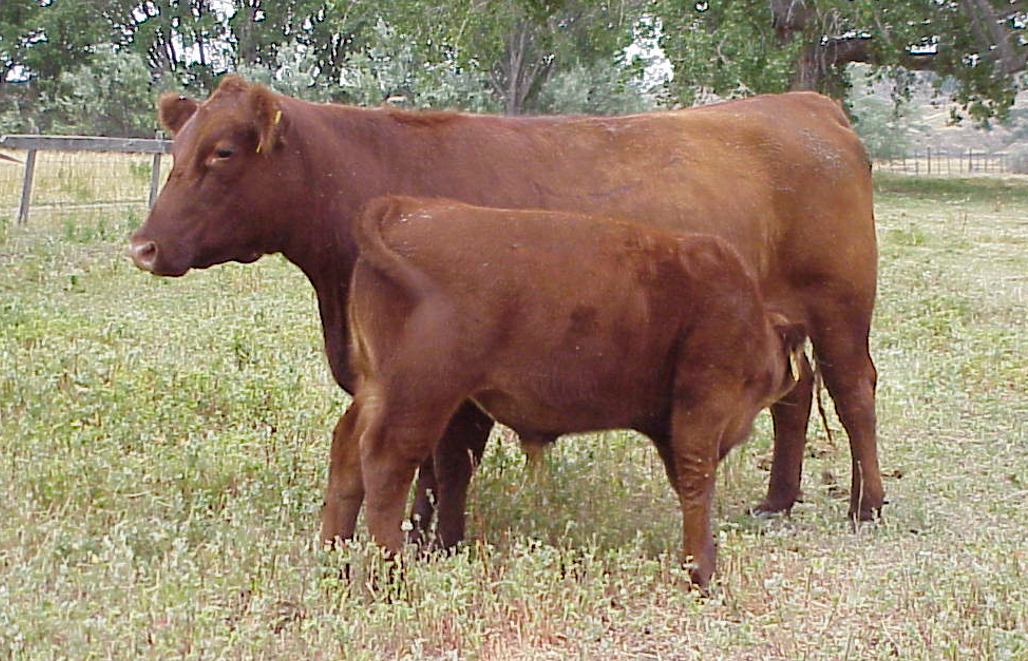 Red Angus cow and calf