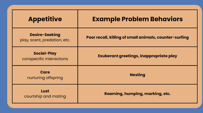 Appetitive example problem behaviors