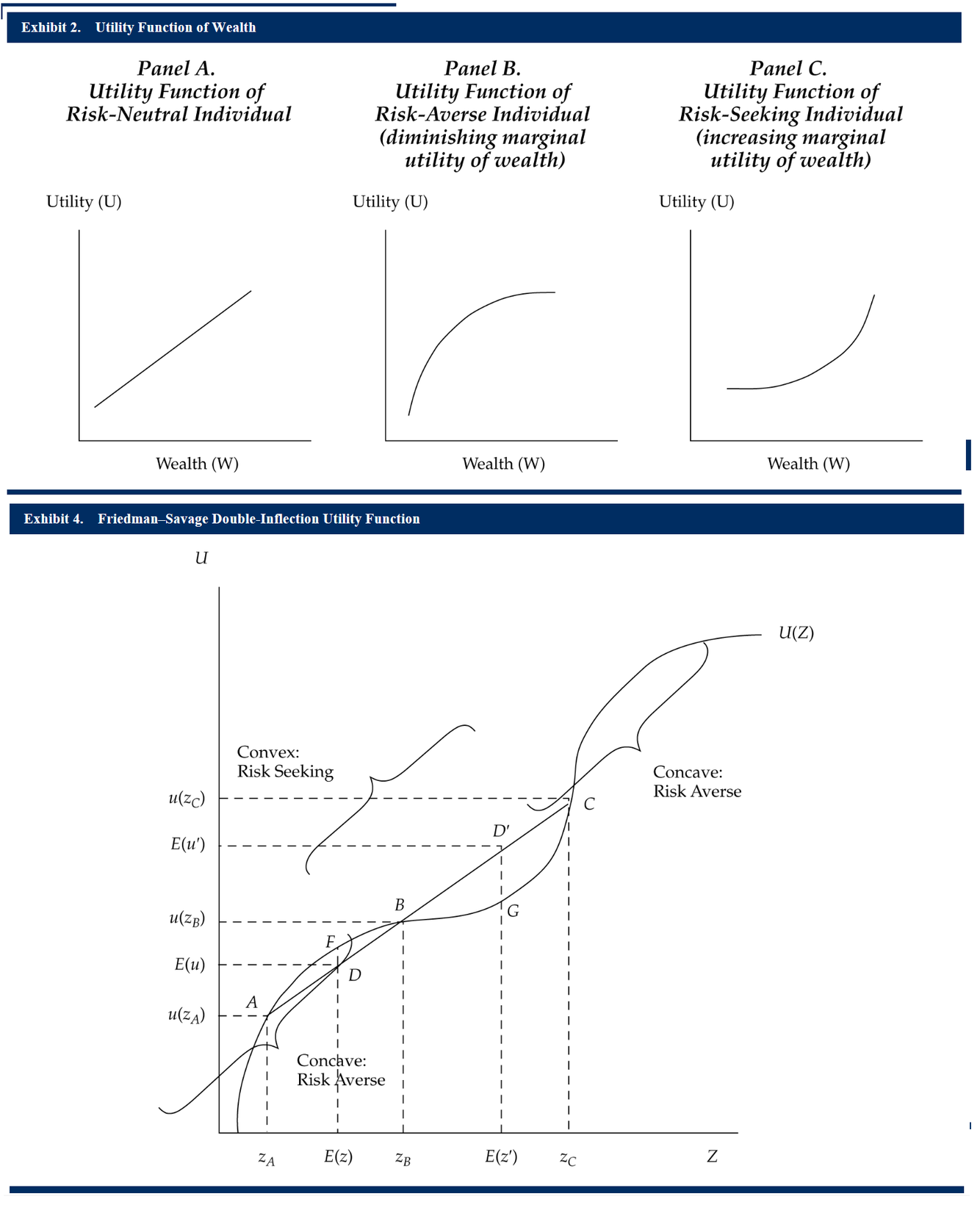 Traditional finance - risk averse (concave, eg. insurance), risk-loving (convex, eg. lottery ticket) or risk neutral
