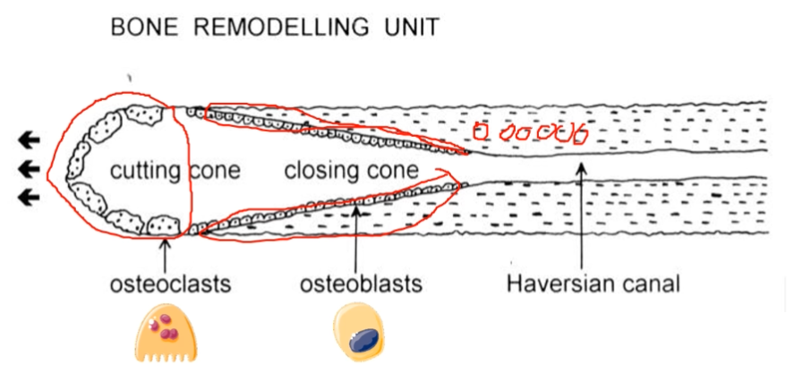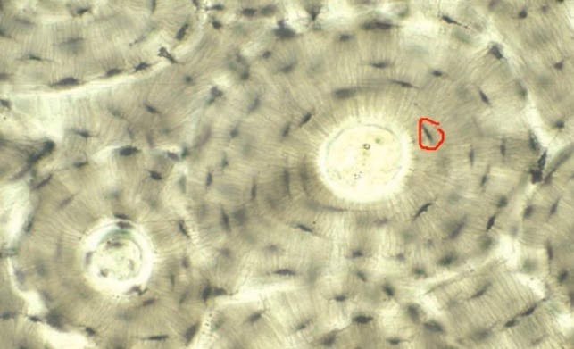 Osteblaster kläder sidan (de lite mörkare cellerna), kärlen är de röda klumparna i det vita