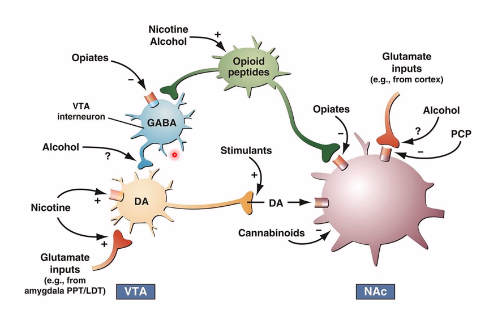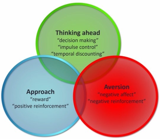 Vilka tre patofysiologiska mekanismer gällande beroende kan man säga finns?