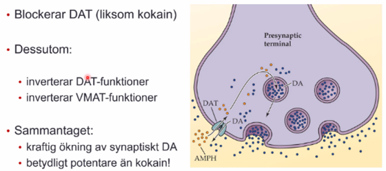 Förklara amfetamin/amfetaminderivats molekylära verkan