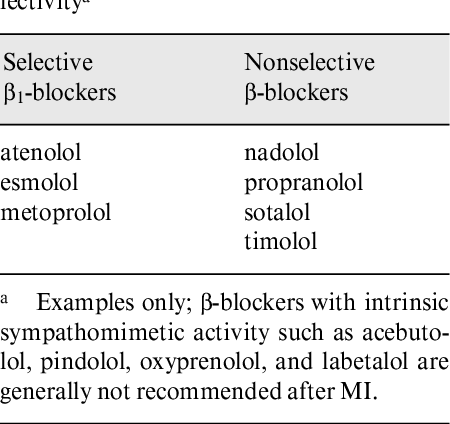 - Atenolol, metoprolol, nebivolol, bisoprolol