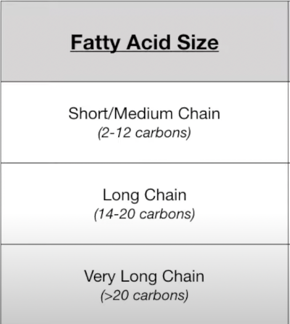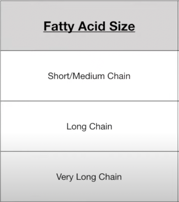 What are the 3 different Fatty Acid Sizes?