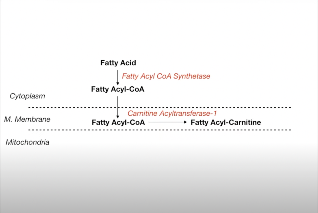 Fatty Acyl-CoA & moving it into the mitochondria.