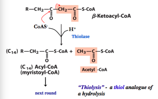produces: B ketoacyl CoA