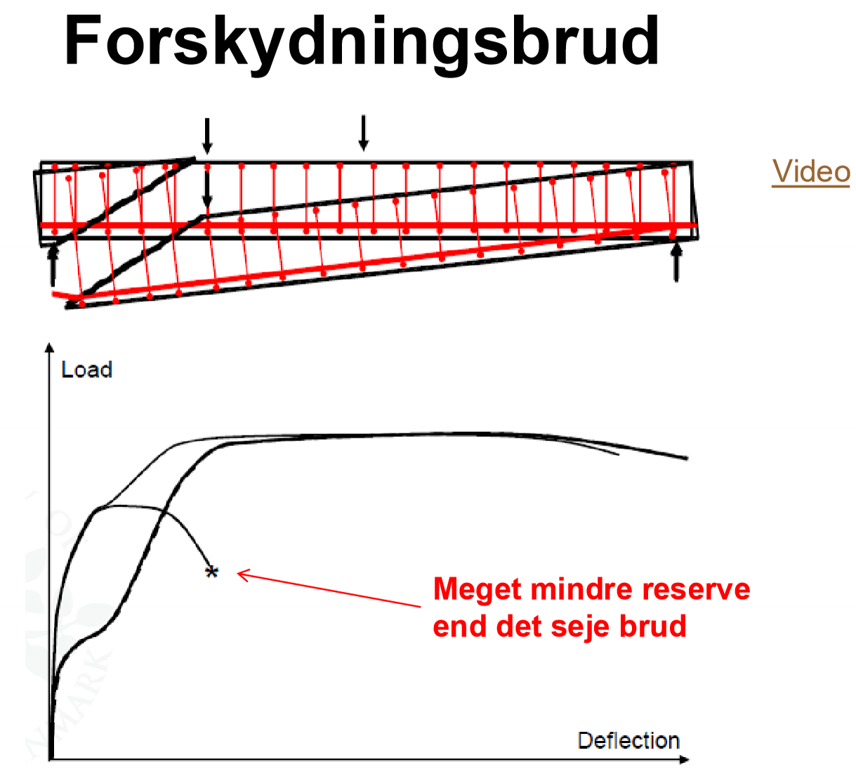 Forklar hvordan et uarmeret forskydningsbrud (uvarslet brud) forløber i en “arbejdslinje” for beton