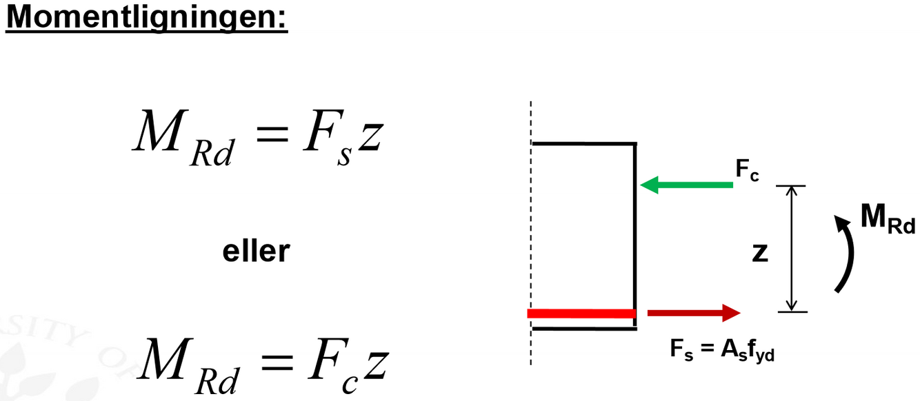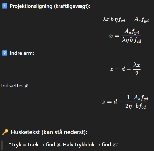 “Tryk = træk → finder 𝑥. Kraft × arm → finder 𝑀_Rd”