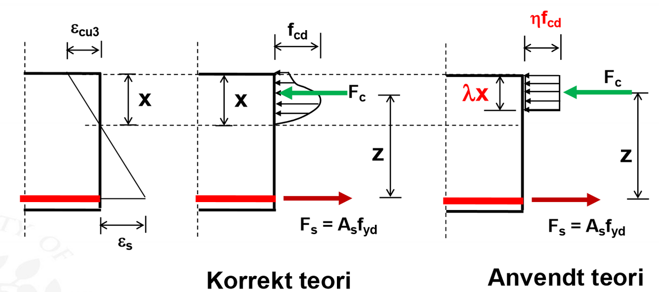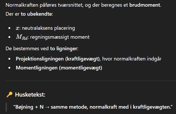 Hvorfor opstår der to ligninger i ULS-bøjningsberegning af armeret beton med normalkraft?