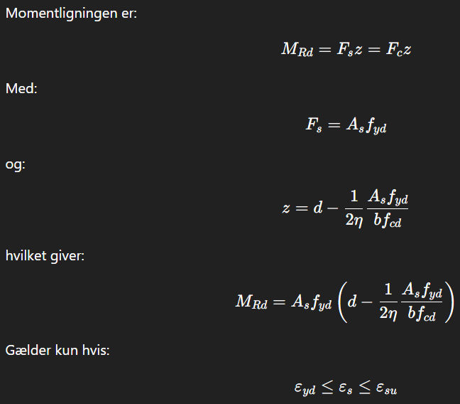 Hvorfor opstår der to ligninger i ULS-bøjningsberegning af armeret beton uden normalkraft?