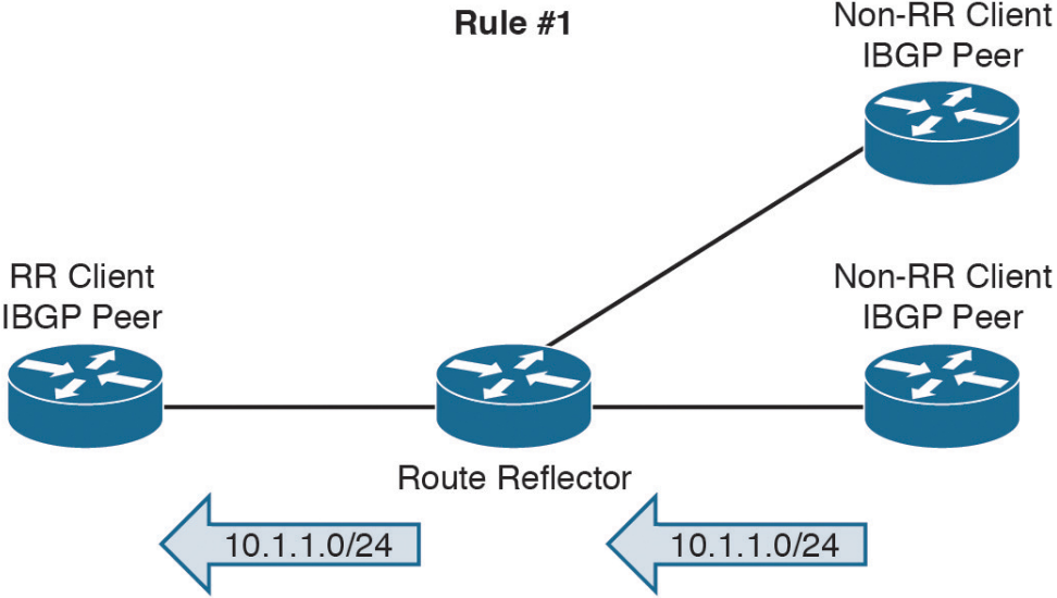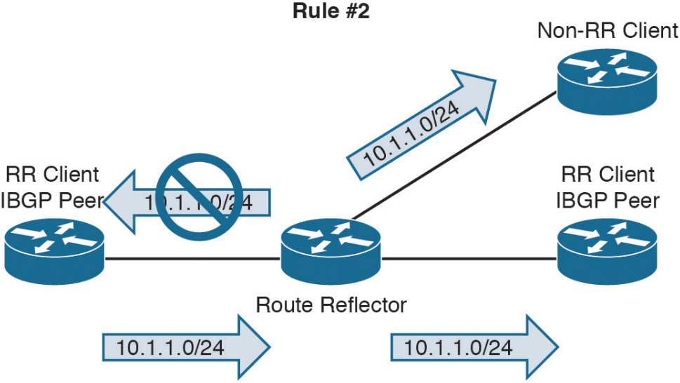 Rule 1: A route learned from non-client can be forwarded to another eBGP and client, but not to a non-client.