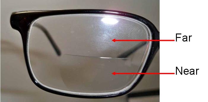 eyeglasses with lenses that have two different sections–for seeing close up and far away
