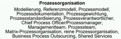ein auf Dauer ausgerichtetes Konzept von Vorgehensweisen, Verantwortlichkeiten, IT-Unterstützungen und kulturflankierenden Maßnahmen, um eine effektive und effiziente Prozessorganisation im Unternehmen gewährleisten zu können.