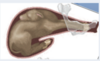 c. Effectuer une palpation de l’utérus avec beaucoup d’attention : durant les premiers stades de la gestation (avant 14 jours) l’embryon est rond et ferme au toucher alors que les kystes sont mous et possèdent une forme variable