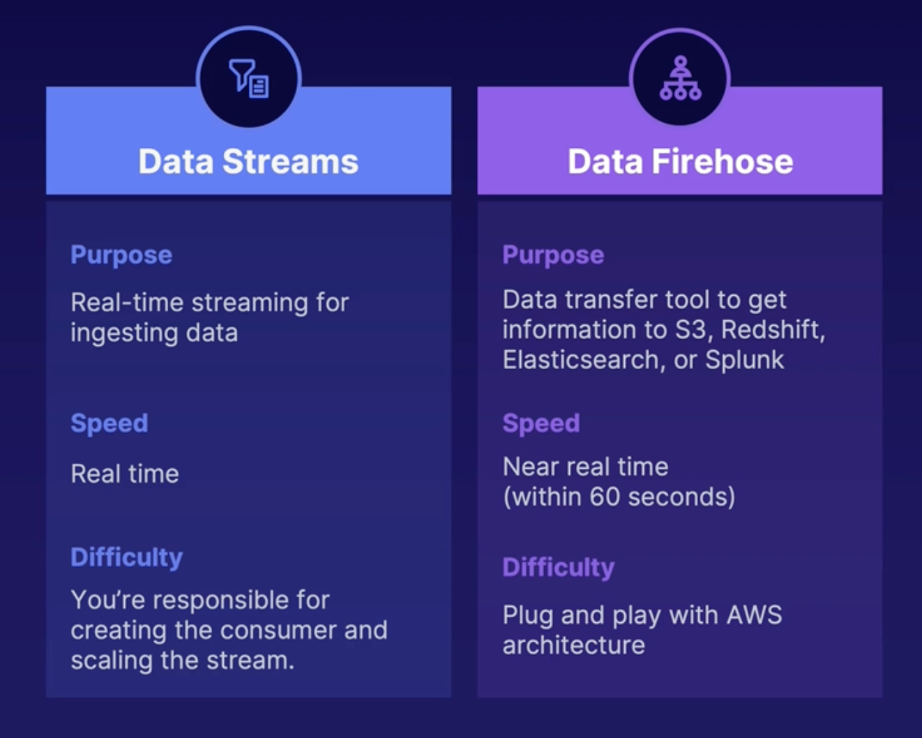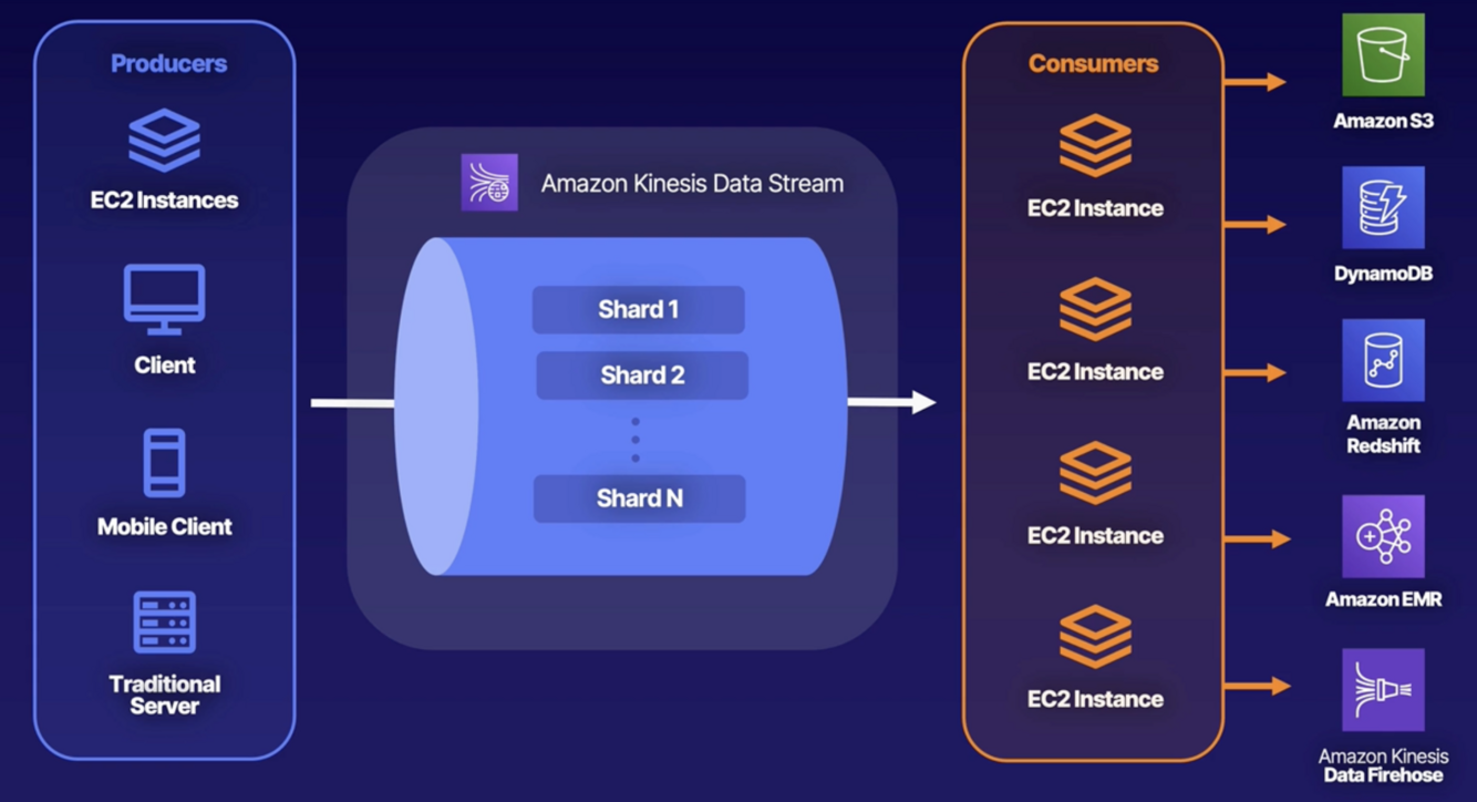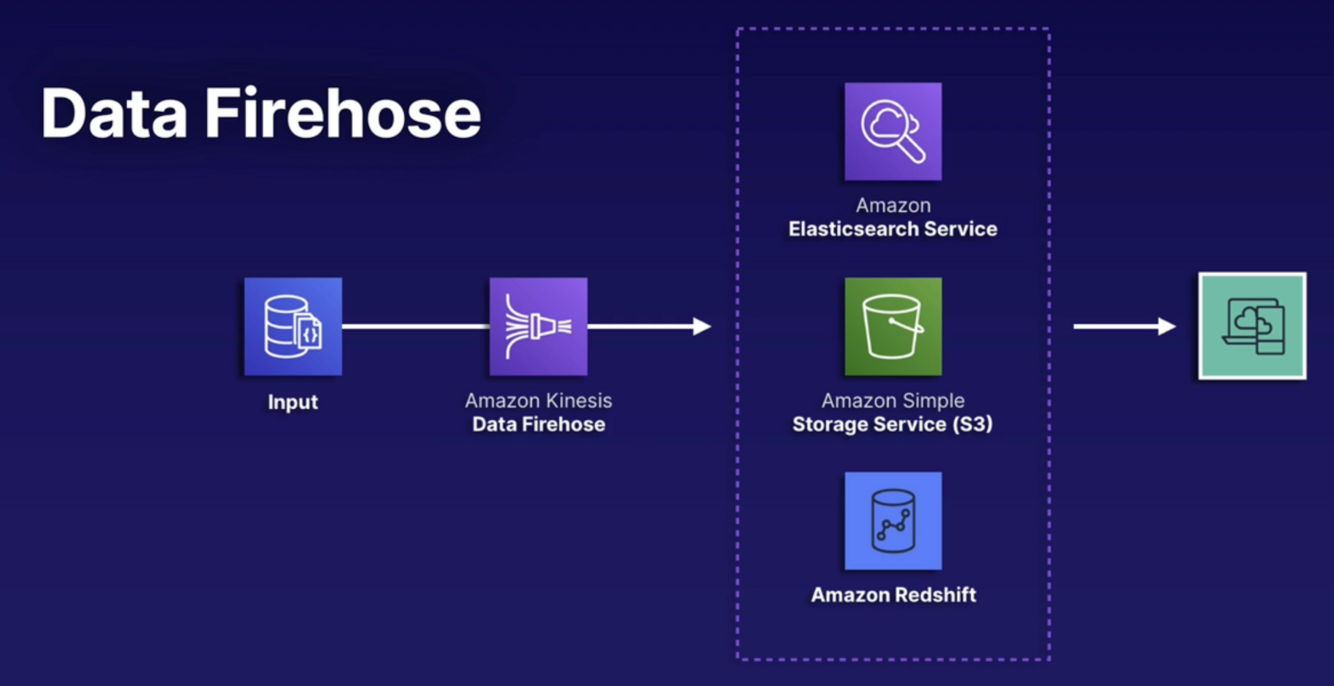 Allows you to ingest, process and analyze real-time streaming data. You can think of it as a huge data highway connected to your AWS account.