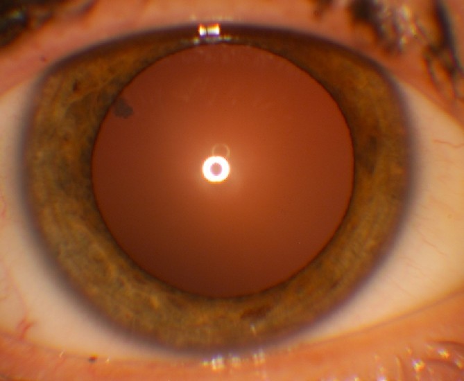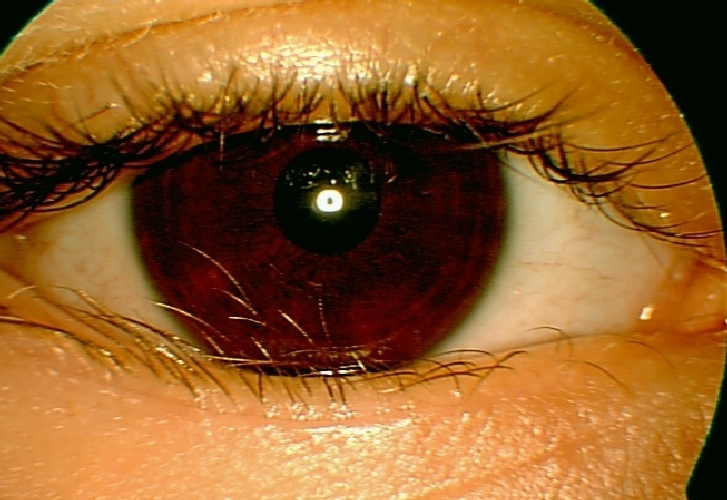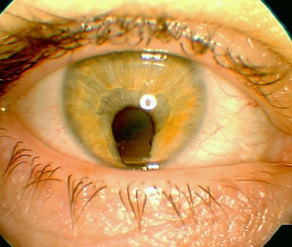 Dette er en sjelden tilstand som kalles aniridi, dvs. mangel på iris. Den forekommer ofte bilateralt og kan deles inn i fire ulike typer: Aniridi med 1)normalt syn, 2)med dårlig syn pga. hypoplasi av fovea, 3)med Wilms’ tumor i nyrene, 4)med mentalt handikap