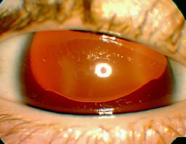 Ut i fra hans anamnese mistenker man en corpusløsning som debuterte for 14 dager siden. Dette resulterte senere i en netthinneavløsning/amotio, som er en løsning av fotoreseptorene fra pigmentepitelet.