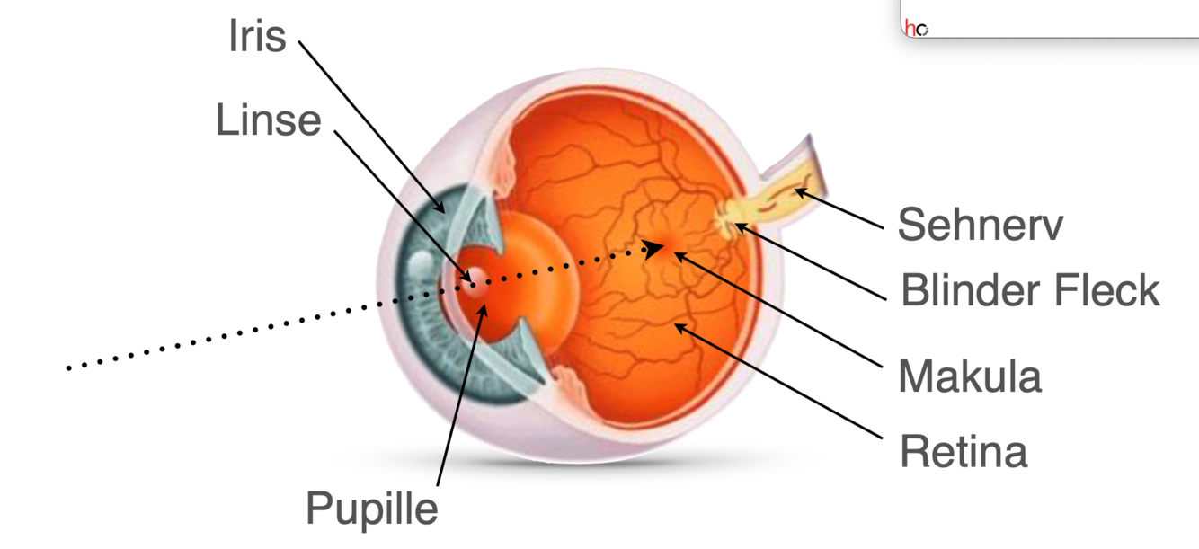 Nenne die entsprechenden Teile des Auges