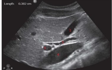 Intrahepatic ducts should measure no longer than what? And exhibit what?