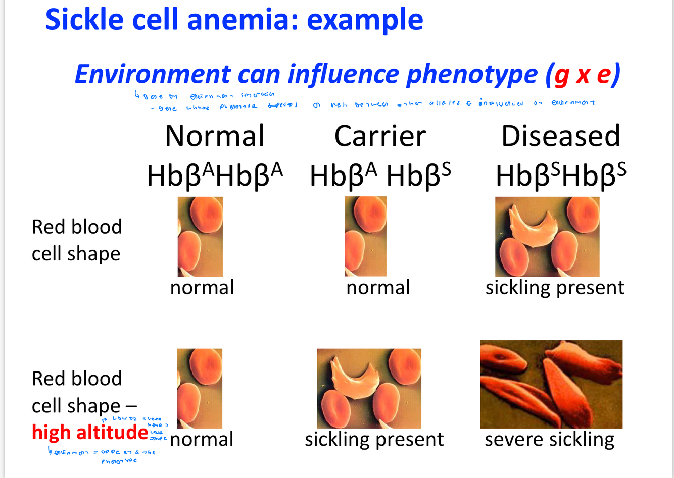 Envirnment = can affect phenotype – RBCs at high altitude can change shape – altitude affects the shape
