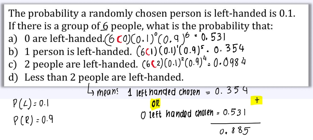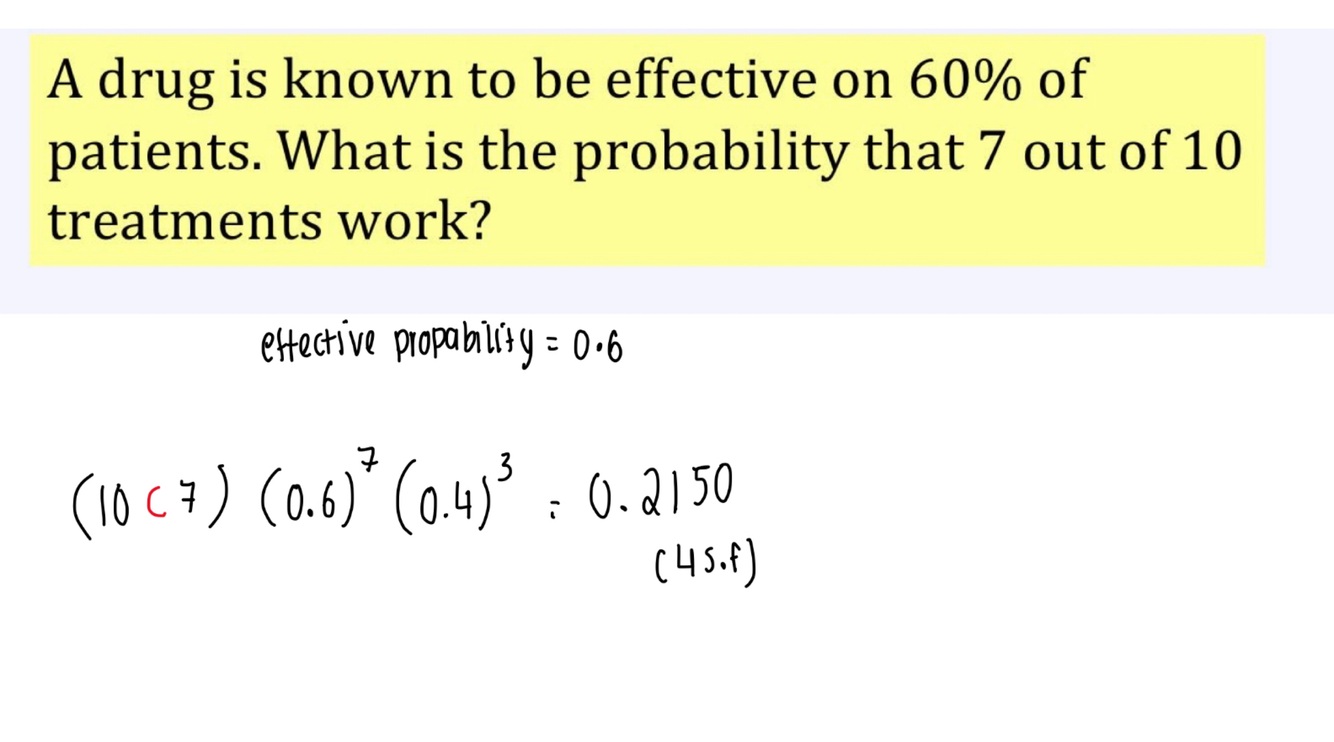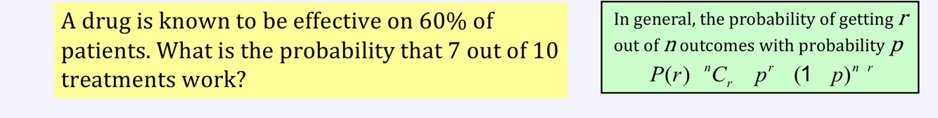 What is the formula for probability of getting r out of n outcomes with a probability P?