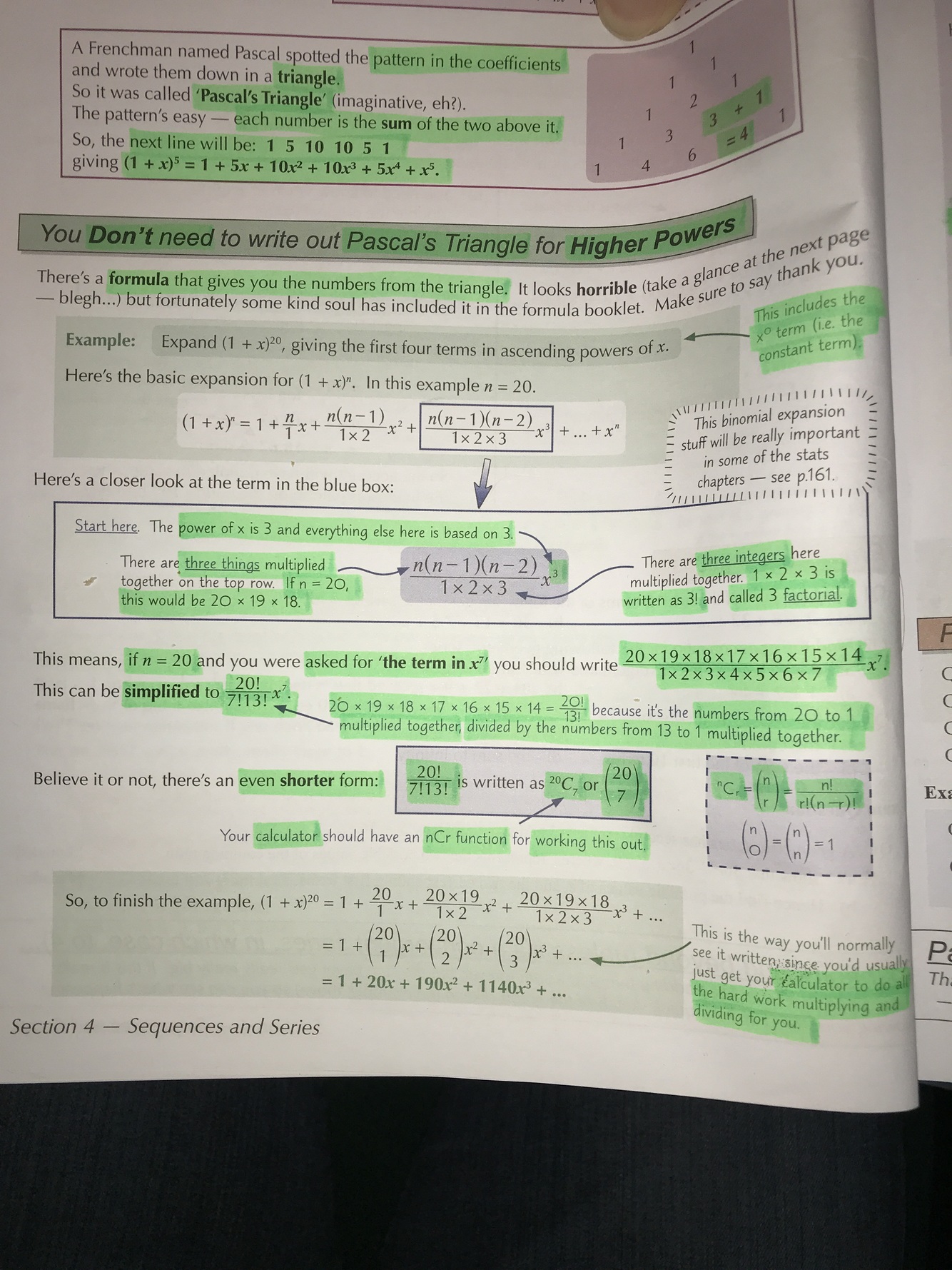 What is the formula to find higher powers. Because its too long to use Pascal’s triangle.
