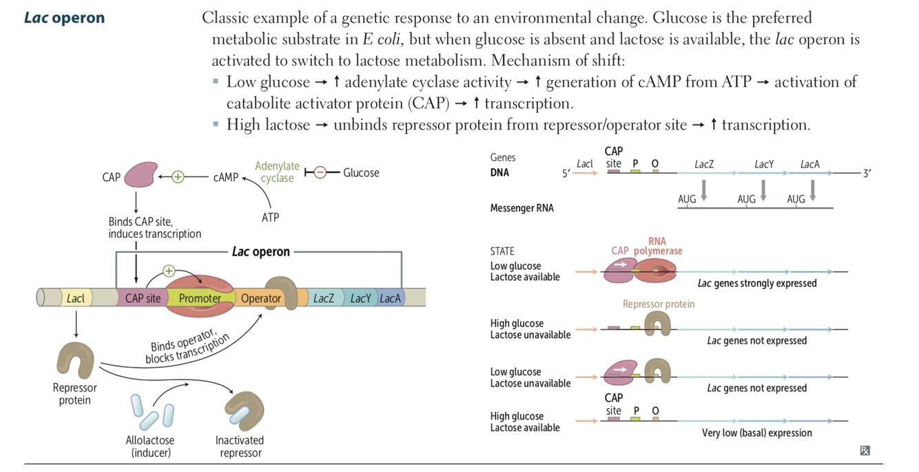 Explain Lac Operon (E. Coli) – Genetic repsonse to environmental change