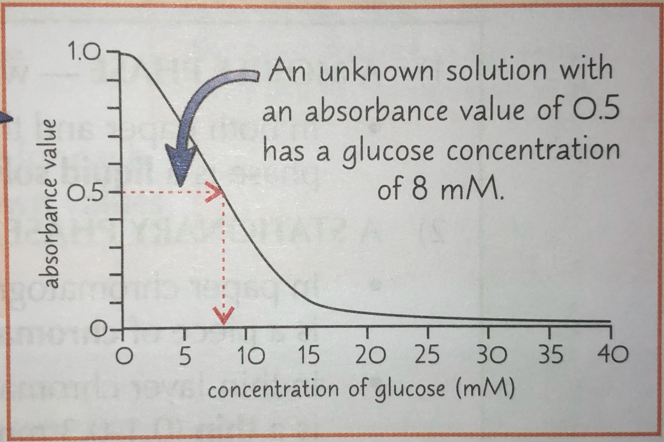 4) use the results to make a calibration curve, showing absorbance against glucose concentration