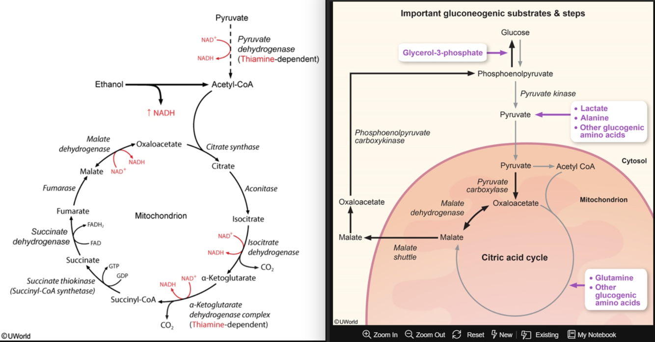 Ethanol inhibition of Citric acid cycle and gluconeogenesis