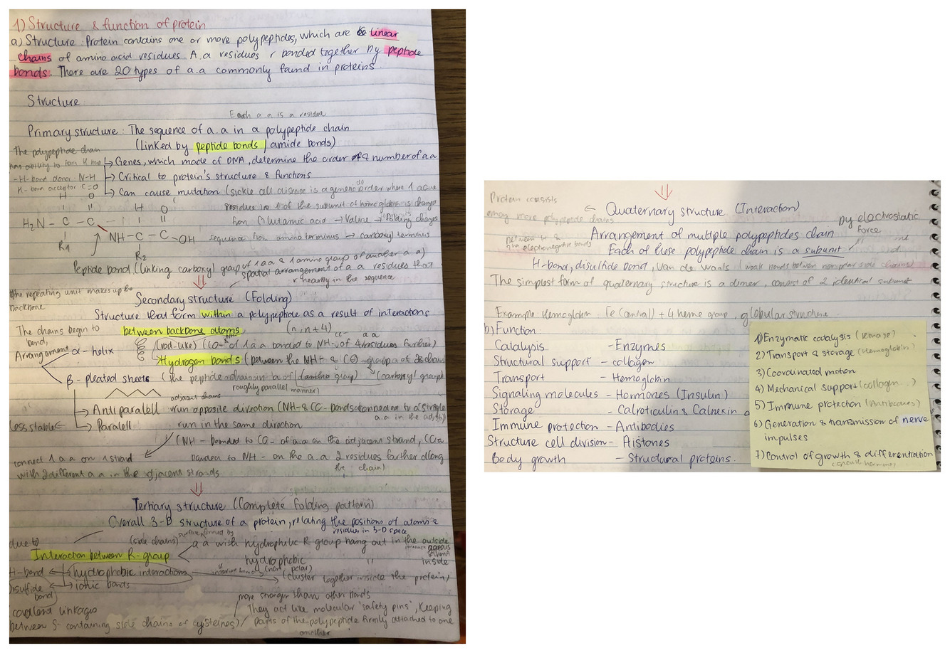 Structure and function of proteins