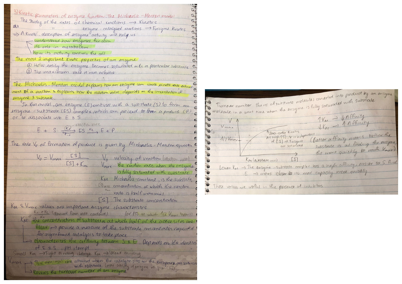 2. Towards to end, [S] is very high —> starting to reach the highest point Vmax —> Zeroth order reaction. This means increasing the substrate concentration will not effect the grade.