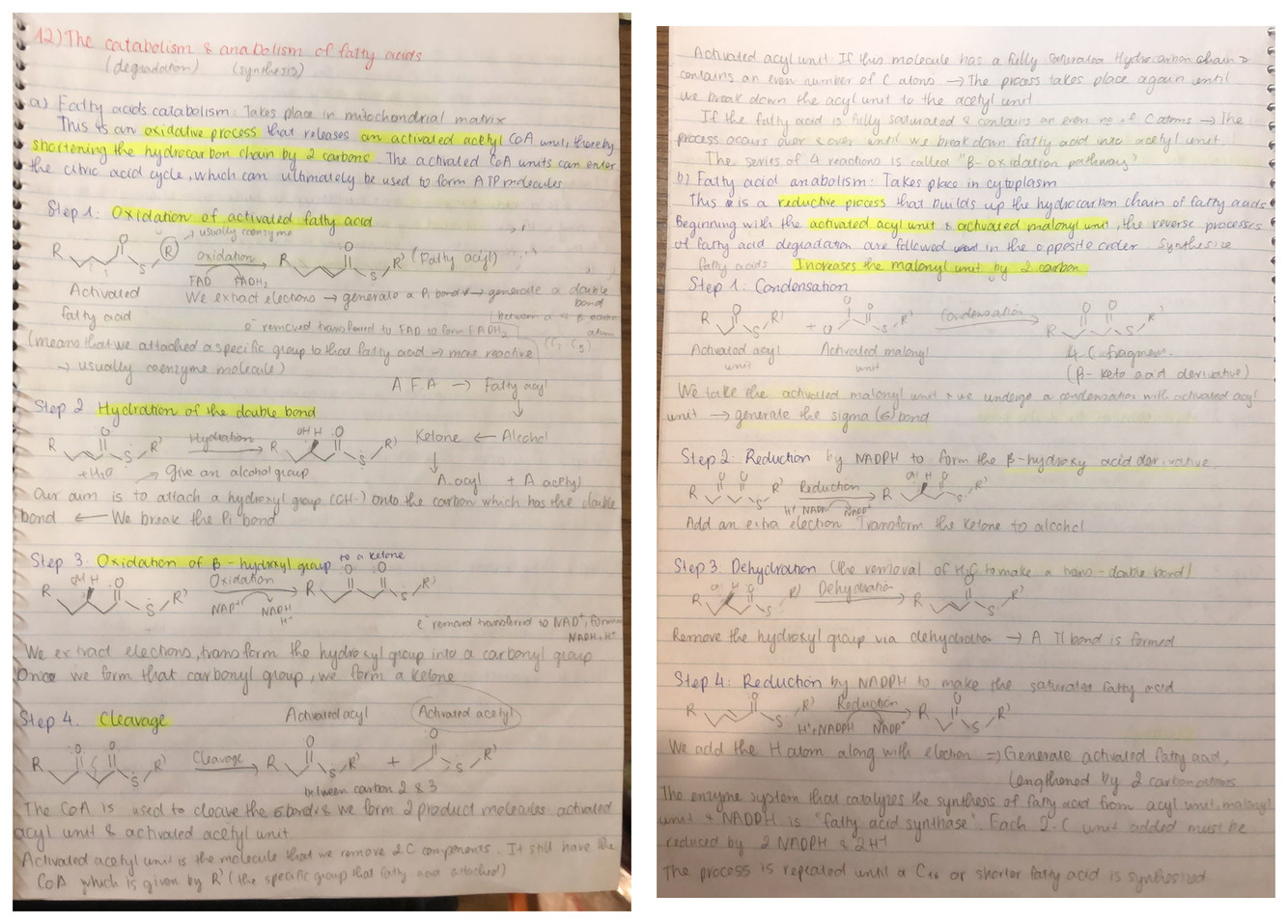 The catabolism and anabolism of fatty acids