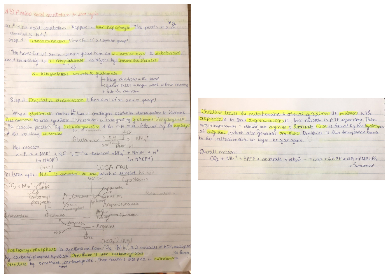 Amino acid catabolism and urea cycle
