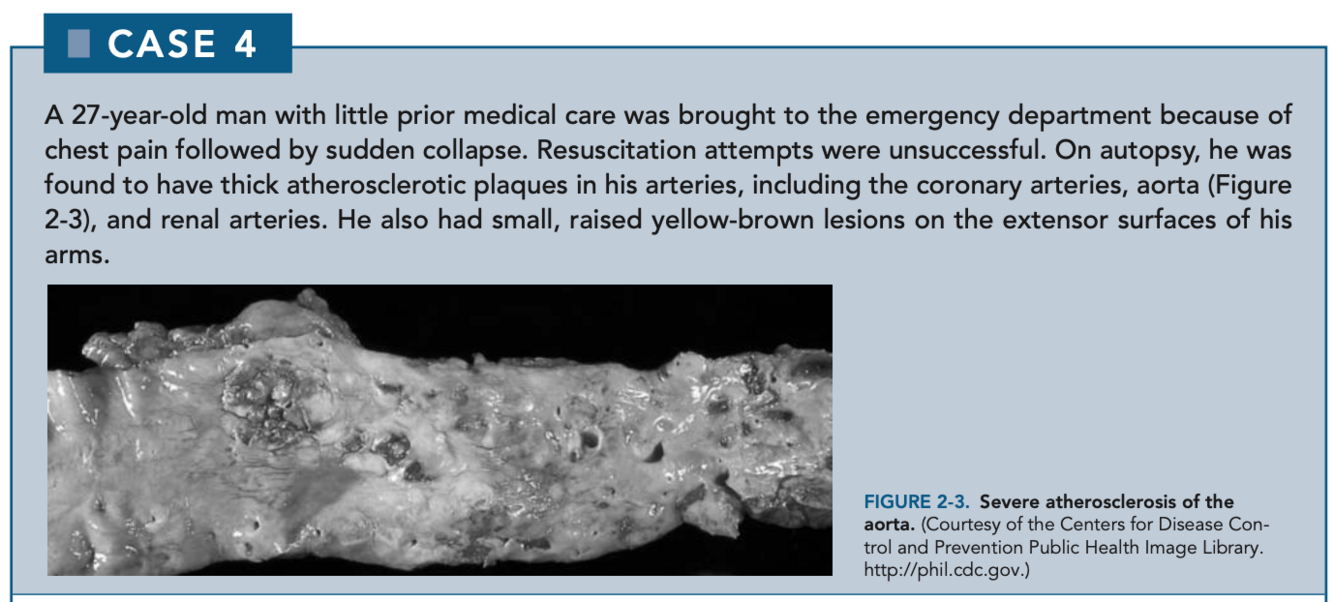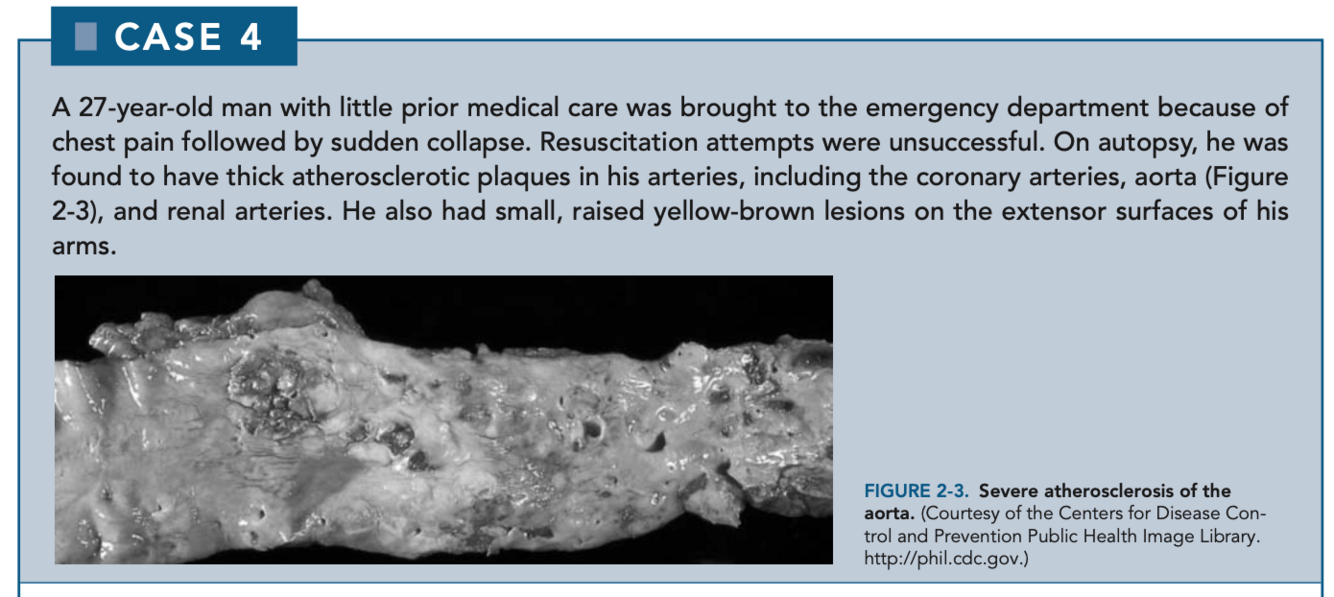 FH is inherited in an autosomal manner. Heterozygotes typically have high cholesterol, approximately 370 mg/dL, and are at increased risk of myocardial infarctions. Homozygotes frequently have extremely high cholesterol levels, up to 1000 mg/dL, and frequently die before 30 years of age from cardiovascular disease. Normal total cholesterol is < 200 mg/dL, and levels > 240 mg/dL are considered elevated.