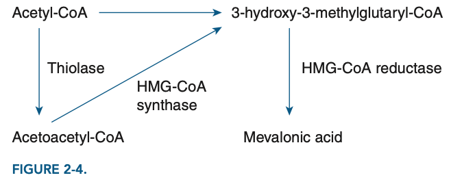 Statins inhibit 3-hydroxy-3-methylglutaryl coenzyme A reductase, a hepatic enzyme that catalyzes the rate-determining step in cholesterol synthesis. They reduce the amount of endogenous cholesterol synthesized by the liver (Figure 2-4).