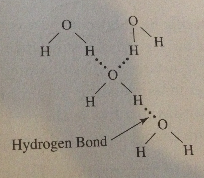 A weak bond between hydrogen and other elements. Keeps DNA strands bonded. allows water molecules to stick together, responsible for many characteristics of water