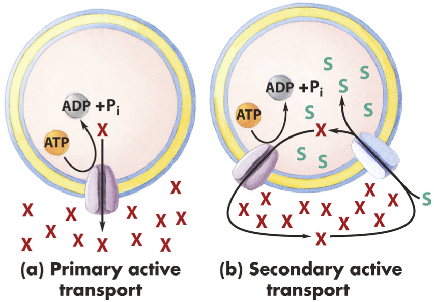 What is Primary Active Transport ? Secondary active transport ?