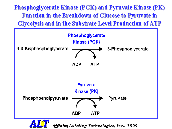 Transfers the high energy phosphate from 1,3 biphosphoglycerate in ADP; forming ATP and 3-phosphoglycerate This type of reaction, in which ADP is directly phosphorylated to ATP using a high energy intermediate