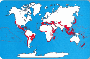 As regiões intertropicais têm a maior diversidade e apresentam a maioria dos hotspots.