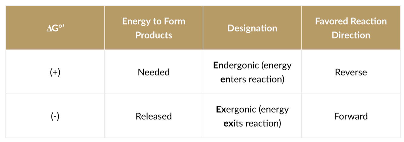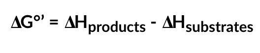 ∆G°’ value is quantified as the difference in chemical bond energy (∆H) between the products and substrates of a reaction: