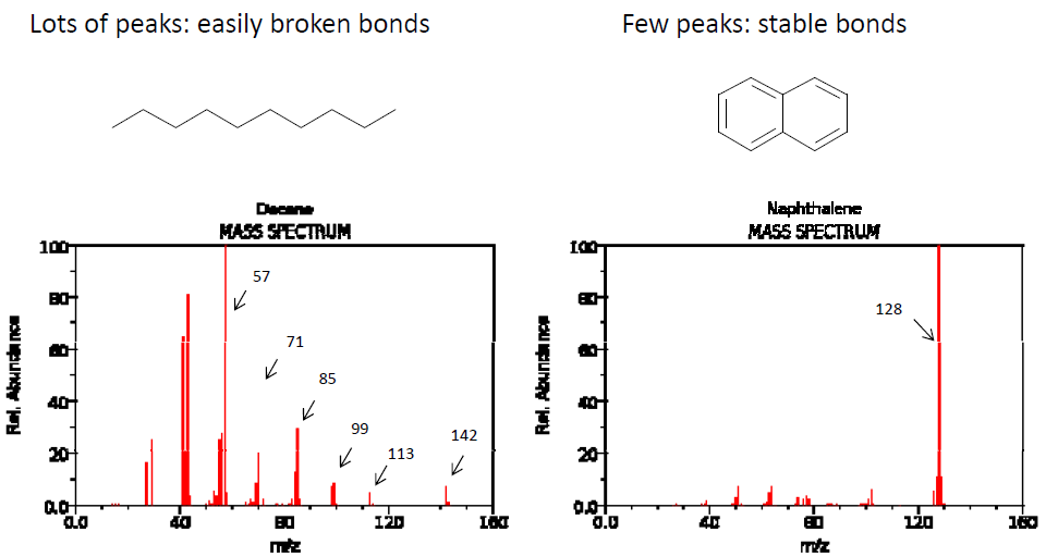 Examine the UV response, mass spectrum and IR spectrum of the unknown compound and state the Molecule stability.