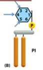 Vesicle formation for endocytosis at the plasma membrane: adaptor protein AP2 has bound 4 PI(4,5)P2 (1 at each of AP2’s 4 subunits) and 2 transmembrane cargo receptors, and the simultaneous binding has caused the membrane to bend, which will help more AP2 proteins to bind.